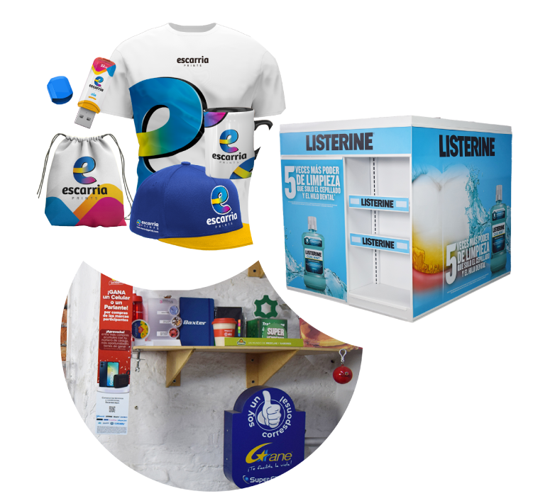 En Escarria Prints somos expertos en llevar tu identidad de marca al mundo físico con publicidad corporativa impresa y material P.O.P. (Point of Purchase). Creamos soluciones visuales atractivas, funcionales y 100% personalizadas para potenciar tu presencia en eventos, puntos de venta y espacios corporativos.